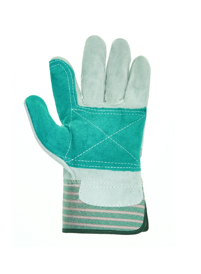 Спилок натуральной кожи сорта ВС мягкий, плотный, толщина 1,3+/-2 мм. На ладонной части и пальцах усиление дополнительным слоем кожи, прошиты прочными двойными швами.