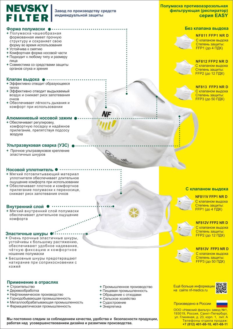 Размер универсальный — подходит для любого типа лица. Носовой зажим из алюминия. Изнутри, в области переносицы, мягкая подкладка-уплотнитель.