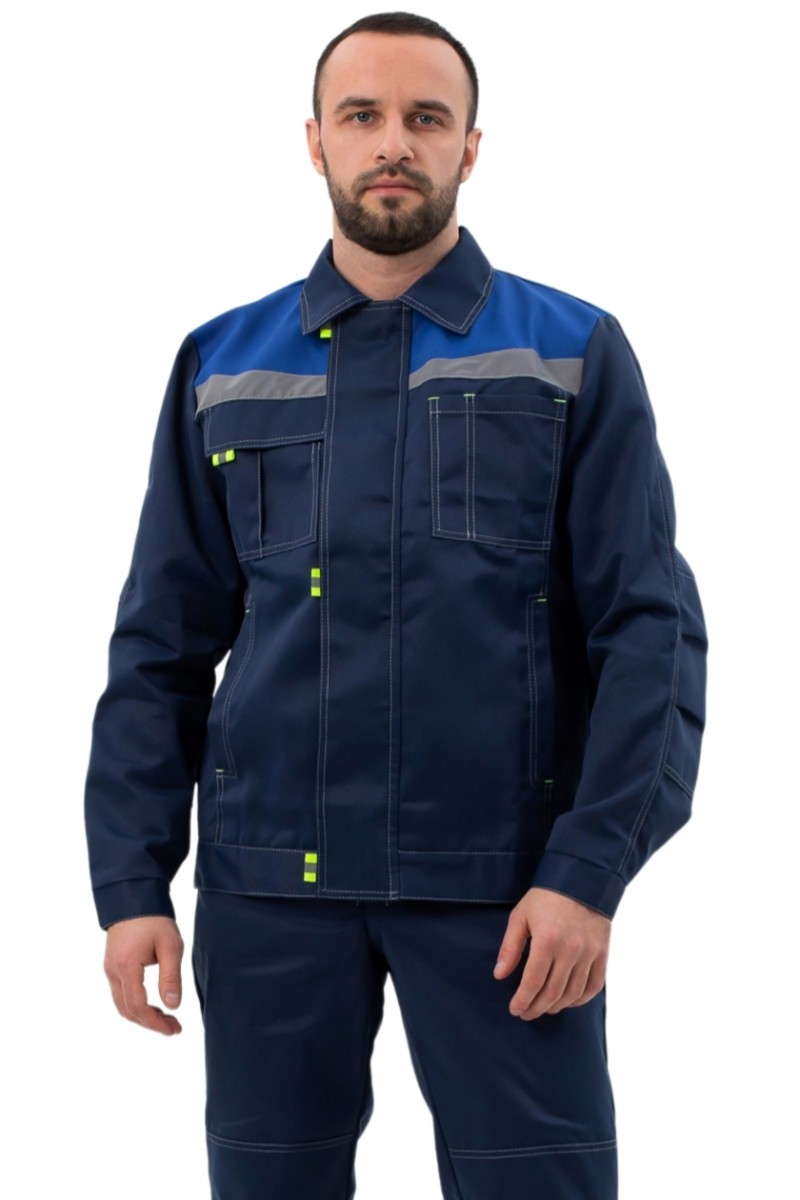 На линии груди два накладных кармана, правый с вертикальной застроченной складкой, левый с отделением для ручки. На нижней части полочки два кармана в рельефных швах.