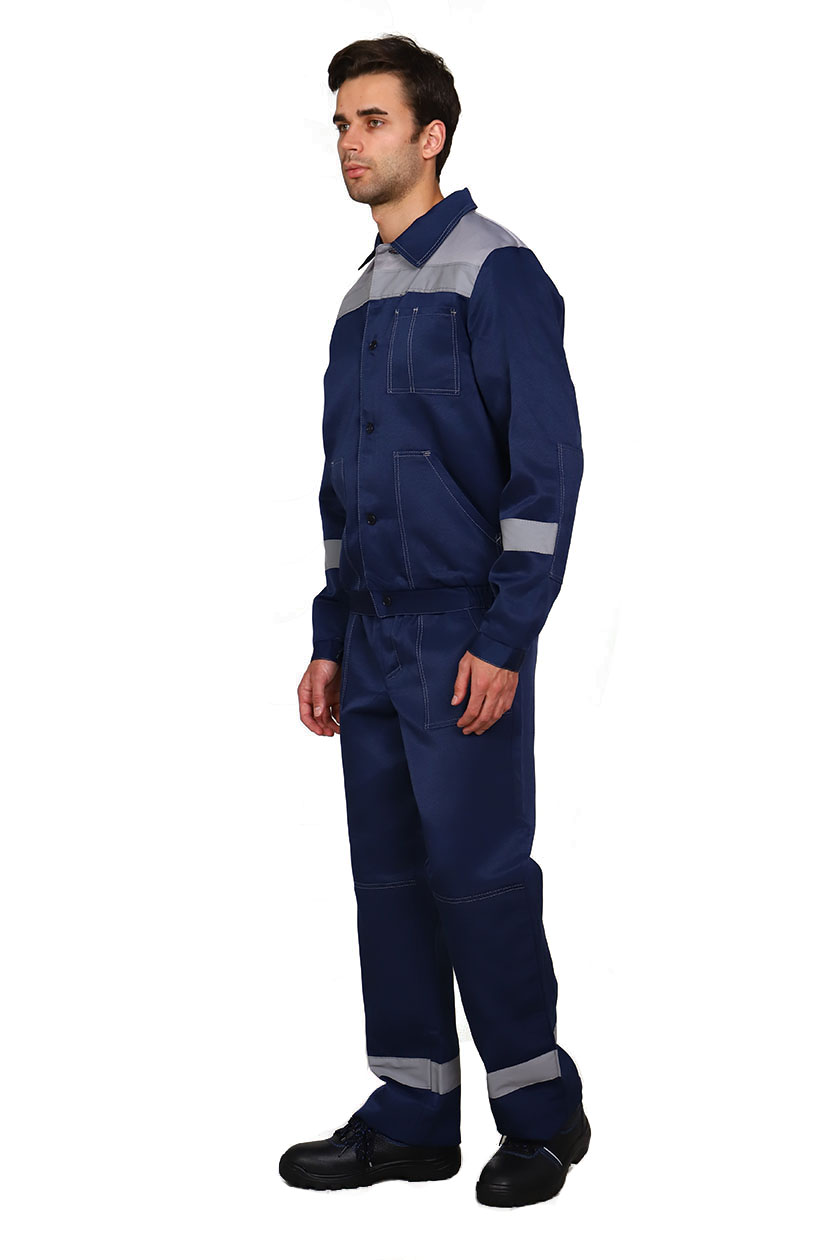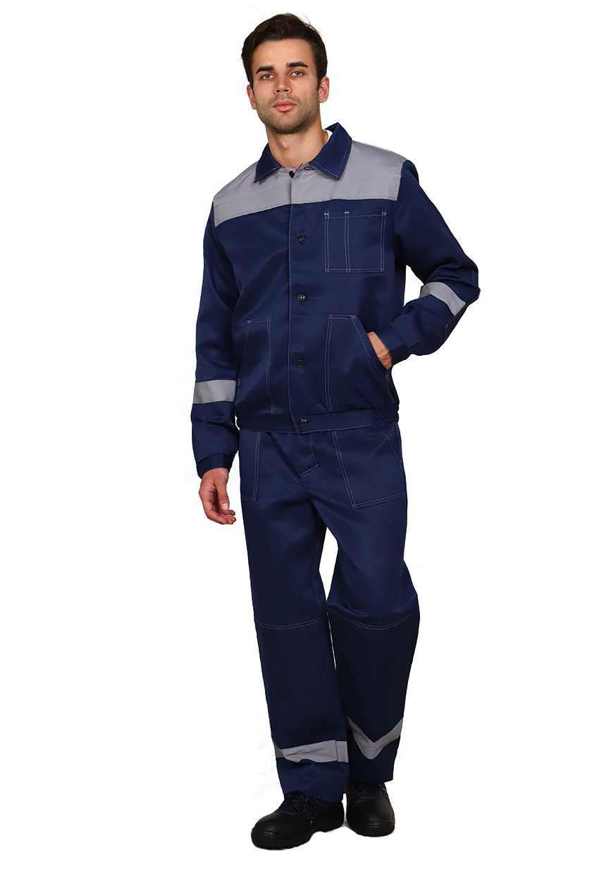 ➠ Куртка: укороченная, с притачным поясом. Центральная бортовая застежка на петли и пуговицы. Воротник отложной. Один левый нагрудный накладной карман с отделением для карандаша или ручки. Два нижних накладных кармана с наклонным входом. Рукава с манжетами, застегивающимися на пуговицу, с налокотниками. Притачной пояс с участками эластичной тесьмы по бокам. По шву притачивания кокетки и по рукавам СОП 50 мм.