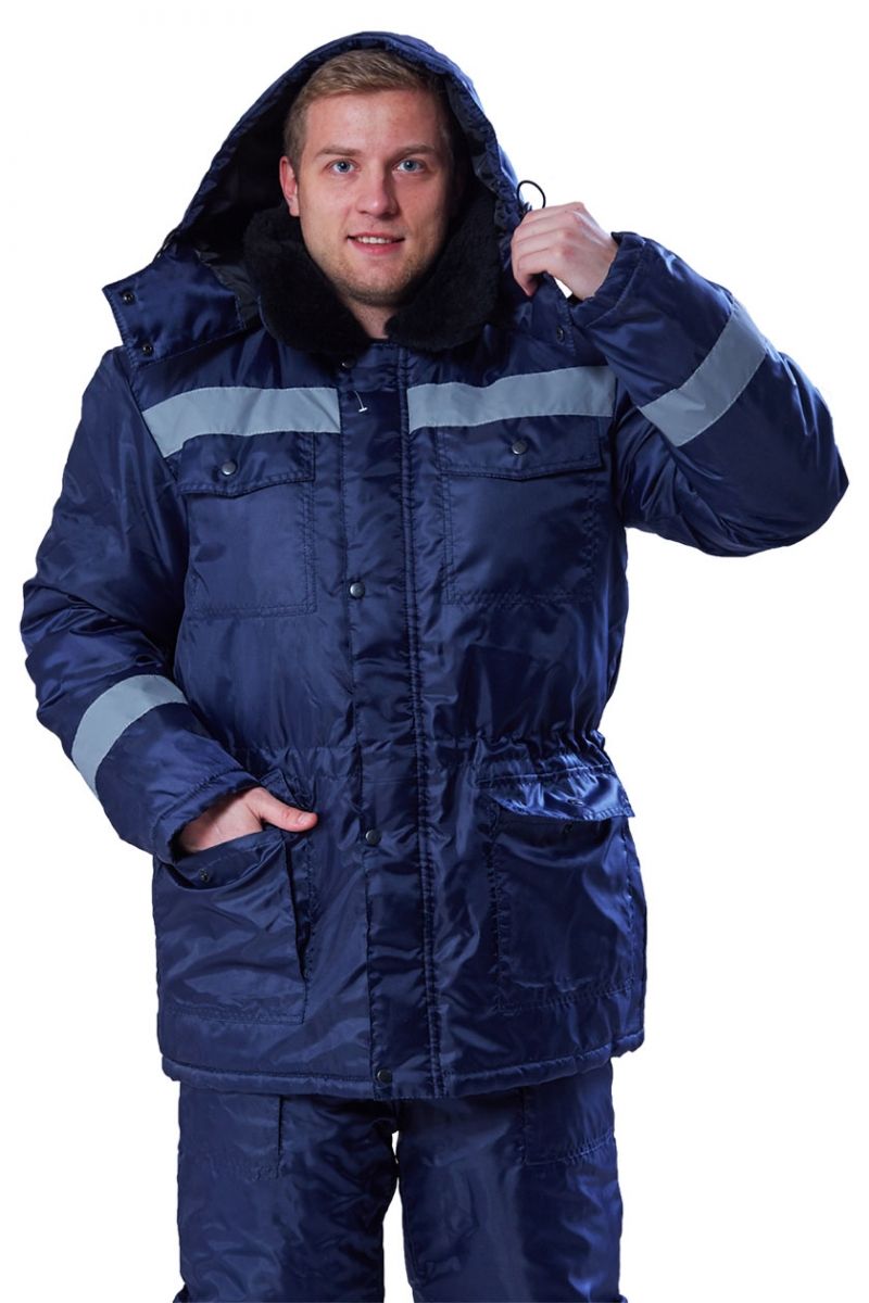 ➠ Куртка с центральной застежкой на тесьму «молния» и ветрозащитной планкой, застегивающаяся на кнопки. Воротник отложной из искусственного меха. Два нагрудных накладных кармана и два нижних накладных кармана с фигурными клапанами, застегивающимися на кнопки.