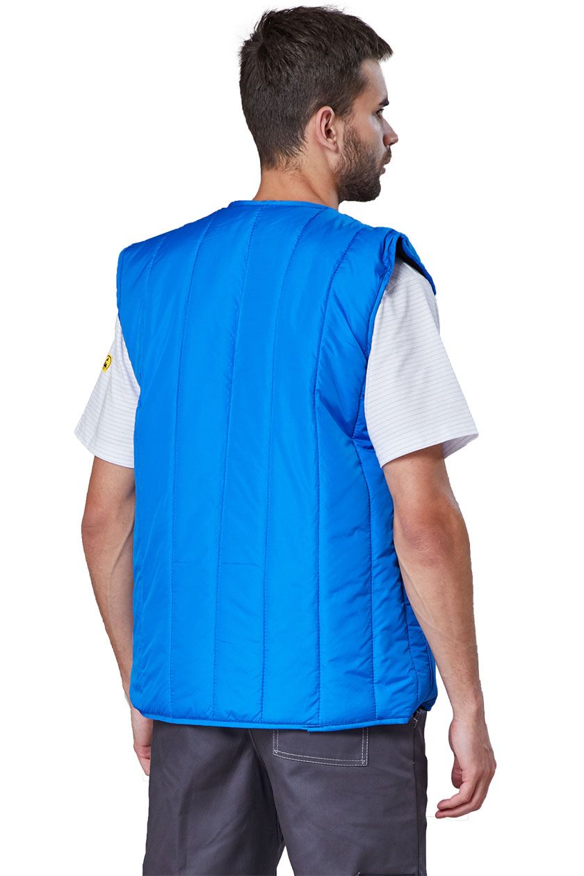 Жилет прямого силуэта, с центральной бортовой застёжкой на тесьму «молнию». Два нижних прорезных кармана с горизонтальным входом. С внутренним накладным карманом.